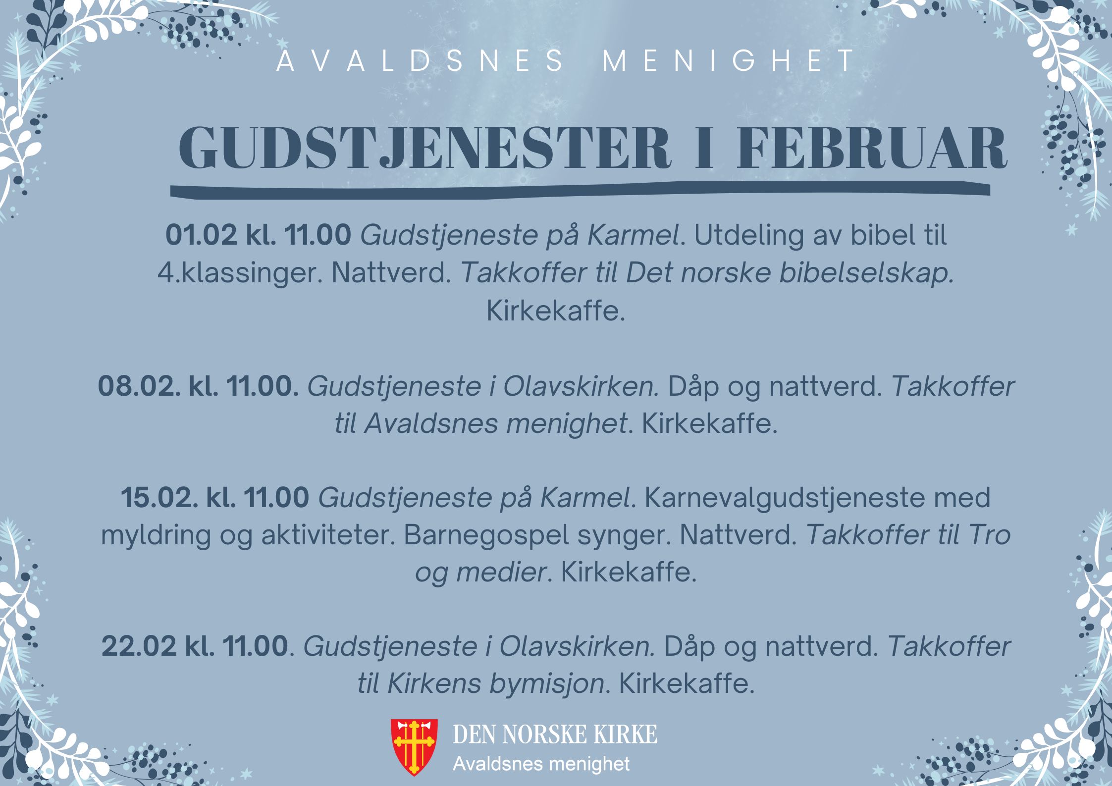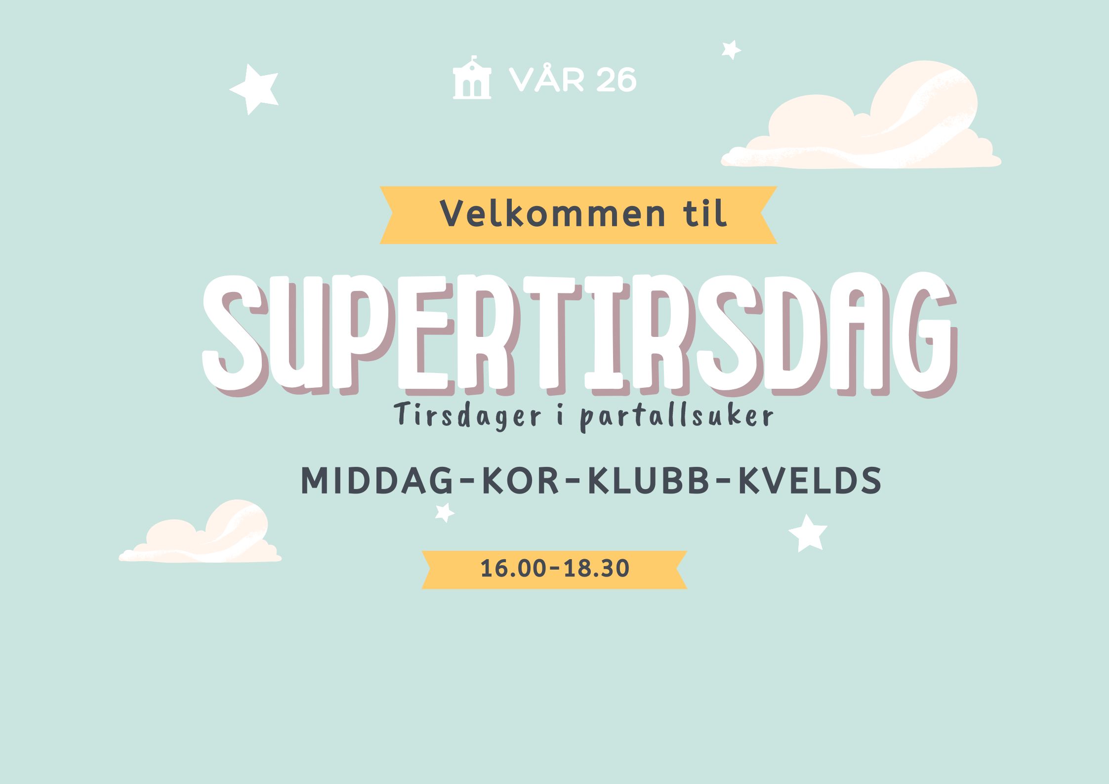 Annen hver tirsdager skjer det mye arbeid for barn og unge på Avaldsnes menighetshus Karmel, derfor kaller vi det supertirsdag! Supertirsdag har egen facebookgruppe hvor det legges ut informasjon til deltakere og foreldre. ...
