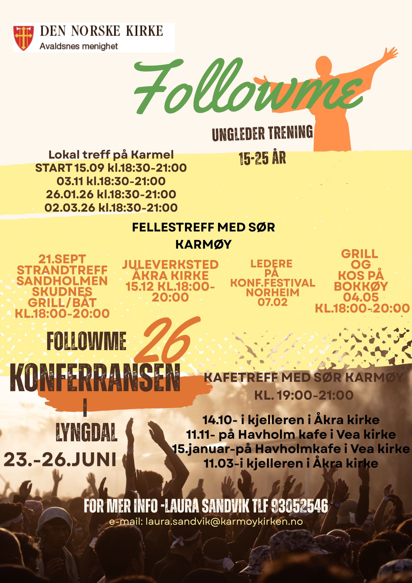 Velkommen til FollowMe ungledertrening for de som er 15-25 år. Vi har to lokaletreff på høsten og to på våren. I tillegg til det er det en del fellestreff med sør Karmøy.
