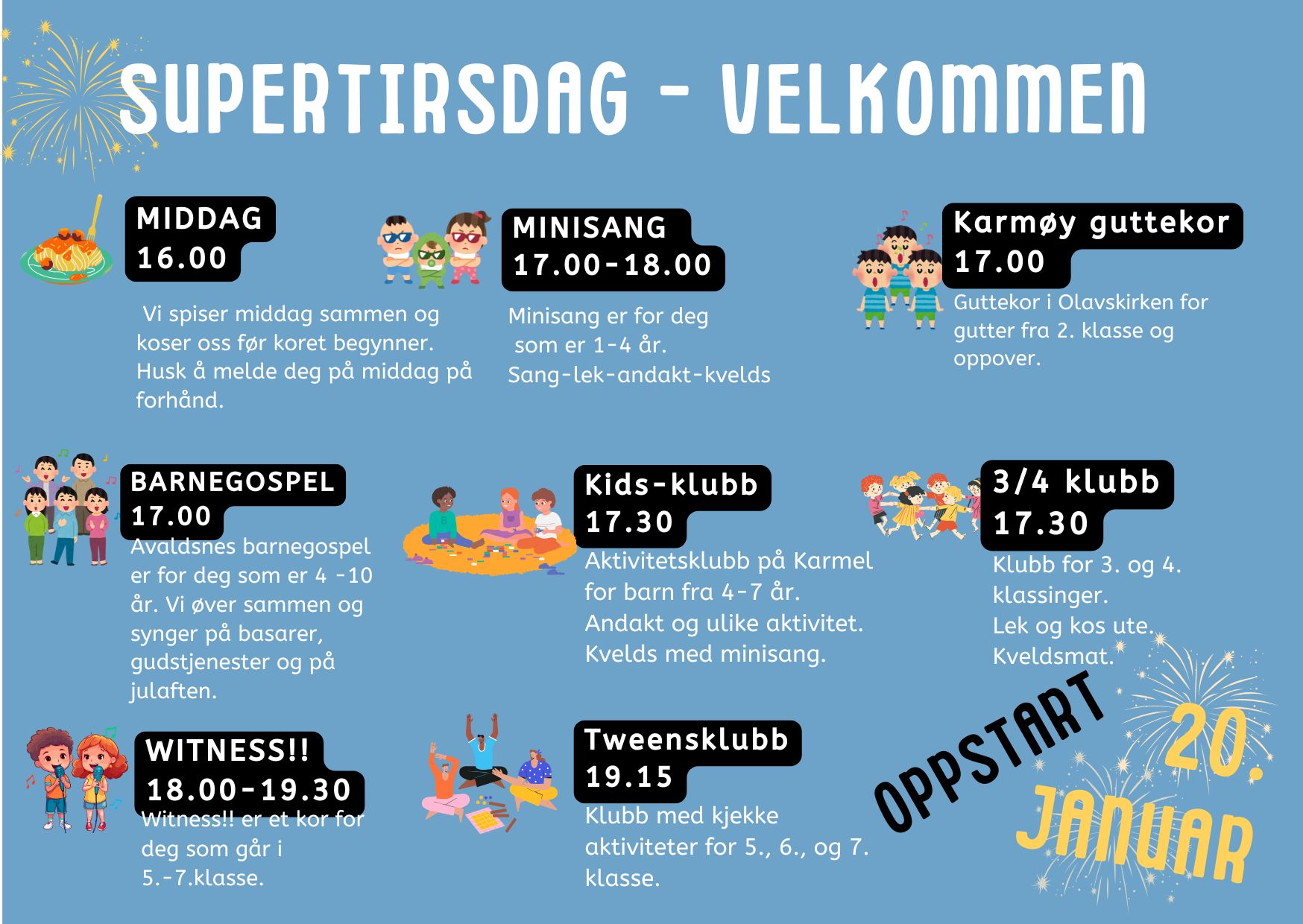 vi starter opp igjen med supertirsdag, den 20 januar. Vel møtt!