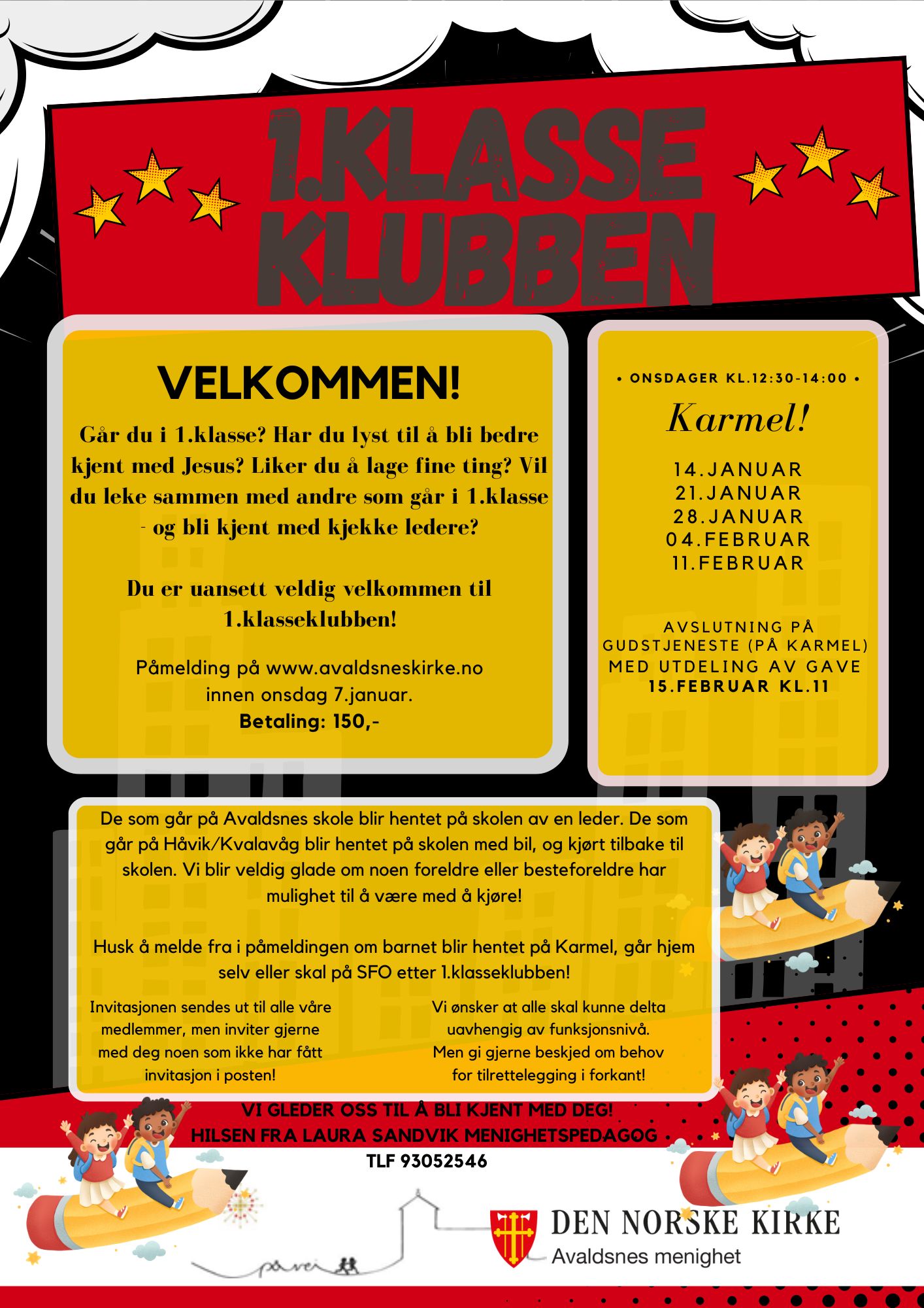 Snart blir det klubb på Karmel for alle som går i 1.klasse! For påmelding trykk her.